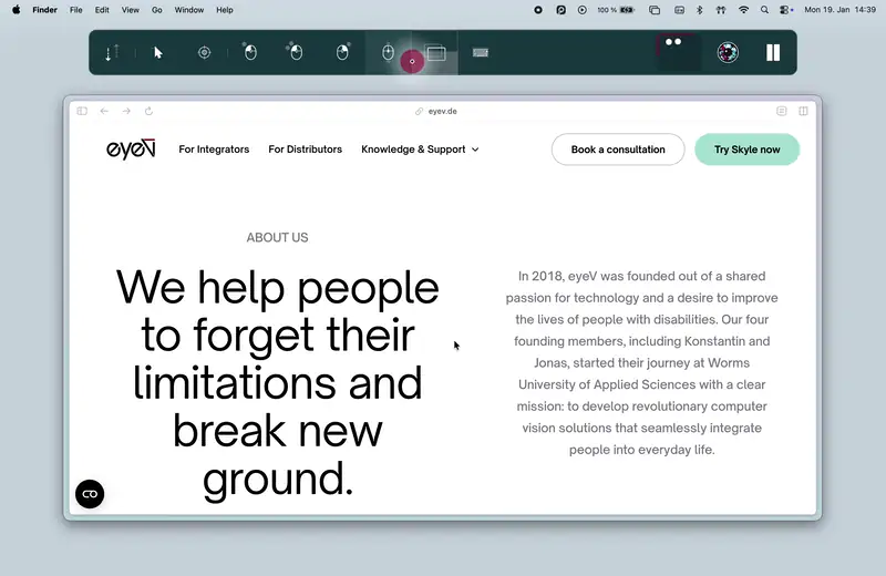 Use your Mac the way you already do — simply with your eyes. Open and switch apps, confirm actions, type into fields, and navigate the web and email, all hands-free. Because Skyle works across the OS, workflows stay familiar and training is light.